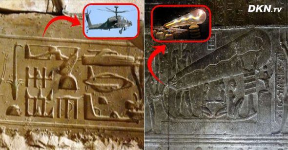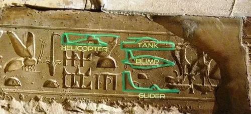 Tại đền thờ Seti I ở Abydos, các nhà khảo cổ đã có một phát hiện thú vị. Trên một phiến đá lớn chống đỡ trần nhà, họ đã nhìn thấy các hình vẽ chạm khắc kỳ lạ, miêu tả các vật thể trông rất giống với các cỗ máy hiện đại ngày nay, bao gồm xe tăng, máy bay trực thăng, và máy bay phản lực, …