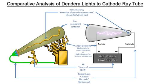 Trên bức tường của một ngôi đền ở Dendera, Ai Cập, có một bức chạm nổi lớn miêu tả một thiết bị rất kỳ lạ.Thiết bị này bao gồm một thứ giống con rắn nằm trong một quả cầu lửa lớn, phóng ra từ một bông hoa sen và được nâng đỡ bởi một cái cột gắn hai cánh tay người.