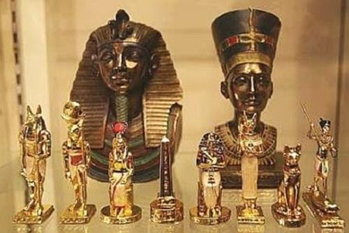 Các hiện vật Ai Cập bằng vàng được thu thập trong quần thể hang động. Ảnh: ĐKN