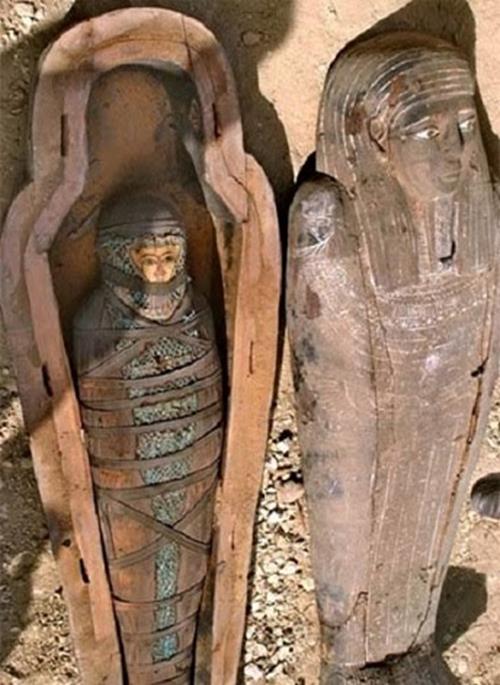 Một quan tài xác ướp Ai Cập trong hầm mộ. Ảnh: ĐKN