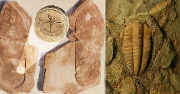 Dấu giày hiện đại với hóa thạch bọ ba thùy. Ảnh: NTD