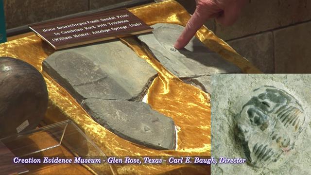 Tháng 6/1968, ông William J. Meister, một nhà sưu tầm hoá thạch đã tìm thấy một phiến đá dày 5cm ở Antelope Springs, Utah, Mỹ. Trên phiến đá có một dấu chân hoá thạch của người. Nói chính xác hơn, đây không phải là một dấu chân trần đơn thuần, mà giống với dấu giày hay dép xan-đan của người hiện đại. Càng kỳ lạ hơn, khi trong lòng dấu chân này có hóa thạch của một con bọ ba thùy (hay tam điệp trùng) – một loài động vật biển không xương sống giống tôm hay cua.