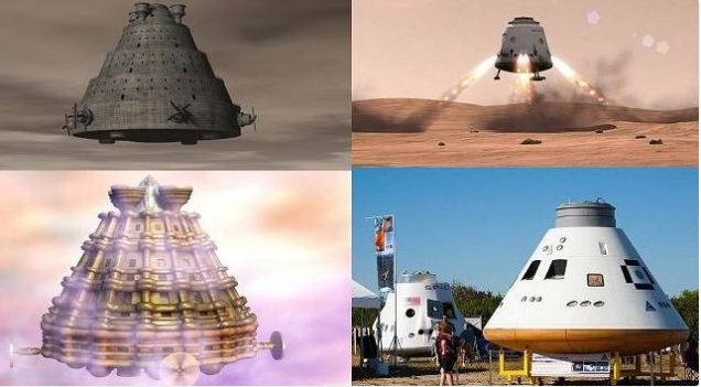 Trái: mô phỏng tàu vũ trụ Ấn Độ thời cổ đại dựa trên các miêu tả trong cổ thư. Phải: Tàu vũ trụ Dragon của hãng SpaceX. Ảnh: Ancient Code