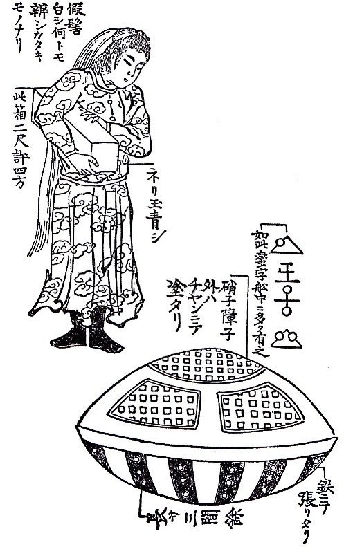 Tranh miêu tả phi thuyền Utsuro-bune bởi Kyokutei Bakin (1825). (Ảnh: Wikimedia).