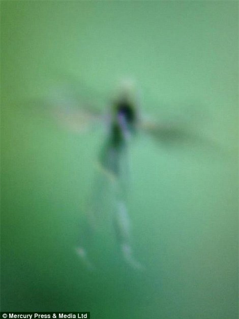 Lisa Wildgoose, một bà mẹ trẻ với hai đứa con, đã vô tình chụp được một sinh vật nhỏ bé, có cánh bay lượn trong rừng hoa gần Towcester, Northampton, Anh.