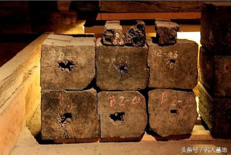 Mỗi bức từng gỗ có trọng lượng khoảng 300kg, những thanh gỗ xếp chồng lên nhau vững chãi. Sau hàng nghìn năm chôn cất, áp lực những thanh gỗ và lỗ mộng ăn khớp tạo nên kết nối cực kỳ chắc chắn, những kẻ muốn lọt vào trong chỉ có cách rút từng thanh gỗ ra và đây rõ ràng là điều không thể.