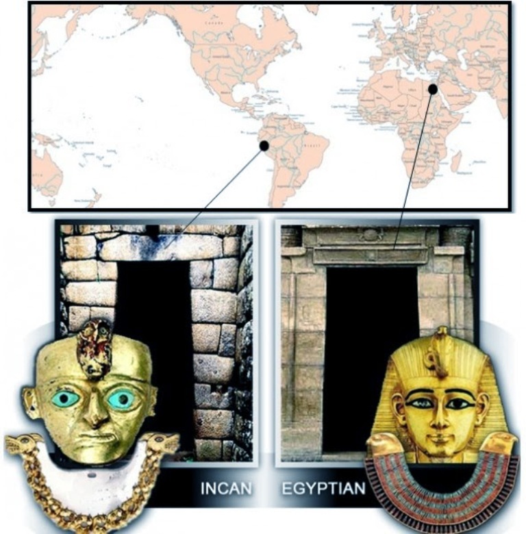Theo chính sử, phải mãi đến năm 1498, khi Colombo đặt chân lên Tân Thế Giới (Châu Mỹ), sự giao lưu văn hóa giữa khu vực này với Cựu Thế giới (Châu Âu, Châu Phi, Châu Á) mới chính thức bắt đầu trên diện rộng. Do đó, thật khó để tưởng tượng hai nền văn minh tiền Colombo phát triển rực rỡ ở hai nửa bán cầu đối lập, ngăn cách bởi một Đại Tây Dương rộng lớn, lại có thể sở hữu một nền nghệ thuật, kiến trúc, biểu tượng, truyền thuyết và tín ngưỡng giống nhau một cách đáng kinh ngạc. Hai nền văn minh đó là Ai Cập, phát triển rực rỡ bên bờ sông Nin ở Châu Phi, và Inca/tiền Inca, phát triển tại sườn dãy núi Andes ở Nam Mỹ.