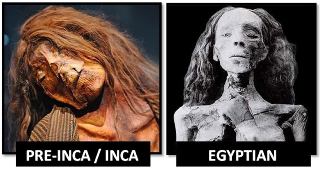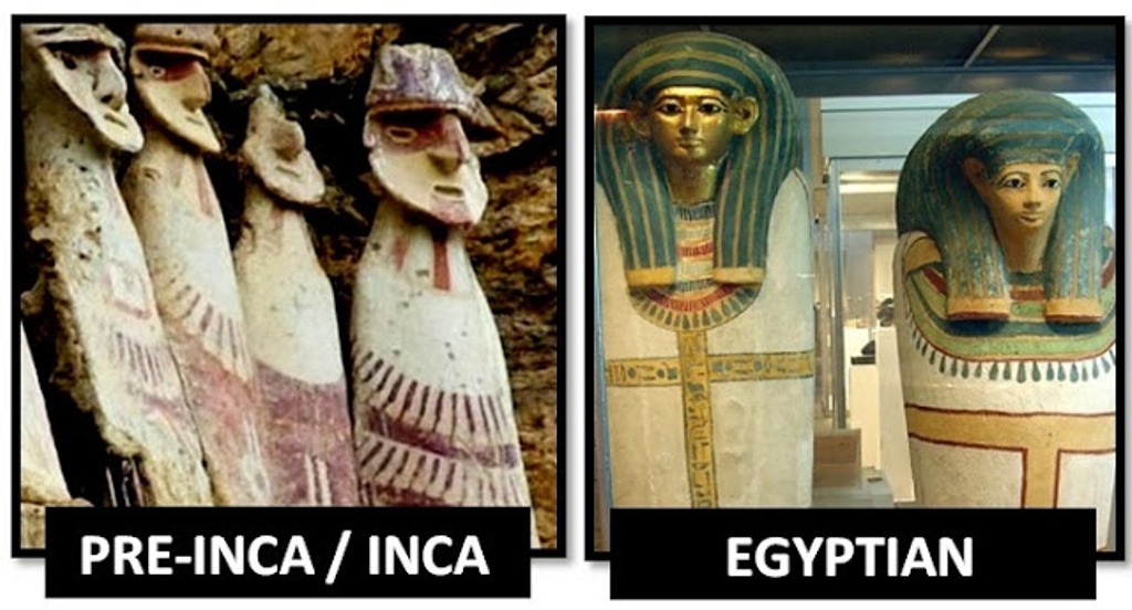 Người Ai Cập và người Inca/Tiền Inca cổ đại đều thiết kế các quan tài hình người cho người chết.