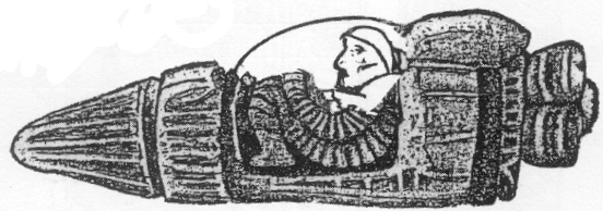 Bức tượng phi thuyền được Sitchin vẽ lại (thêm phần đầu bị mất) từ nguyên gốc