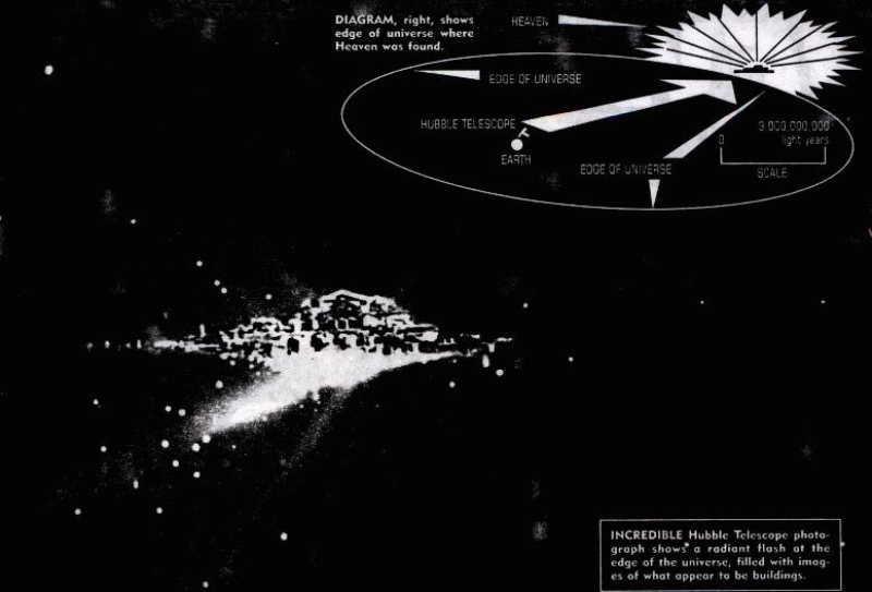 Bìa tờ báo Weekly World News được phát hành 8/2/1994 tại Mỹ, với tựa đề: “Thiên đường đã được kính viễn vọng Hubble chụp được” và trích dẫn lời nhà khoa học: Chúng tôi đã tìm thấy nơi Thần cư ngụ..” (Ảnh: Weekly World News)