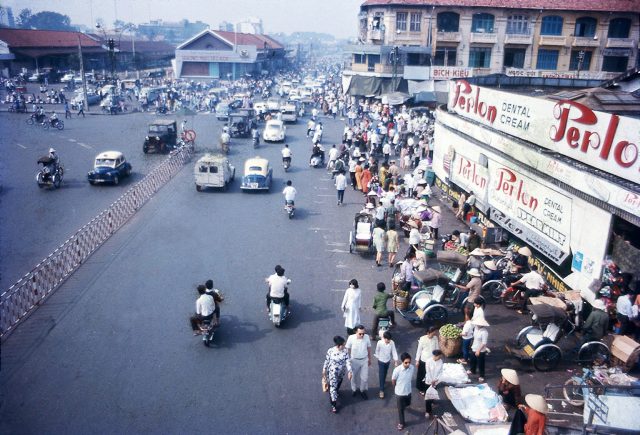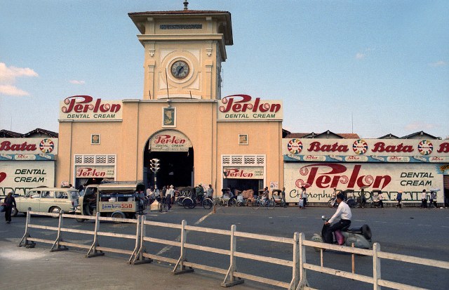 SAIGON 1972 – Chợ Bến Thành hình chụp từ trên cầu vượt bộ hành từ bùng binh đi qua chợ