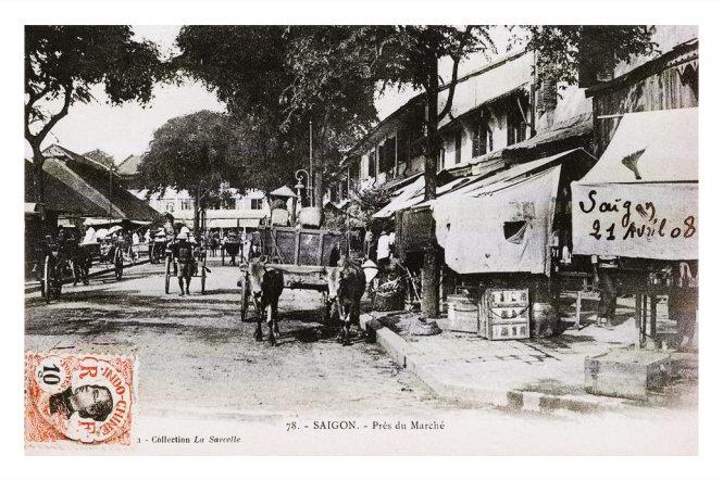 Ảnh chụp năm 1910, những ngày cuối cùng khi dẹp ngôi chợ cũ này, tấm bưu ảnh hiếm hoi này ghi tên “Chợ Sài Gòn” (Le marché de SAIGON)