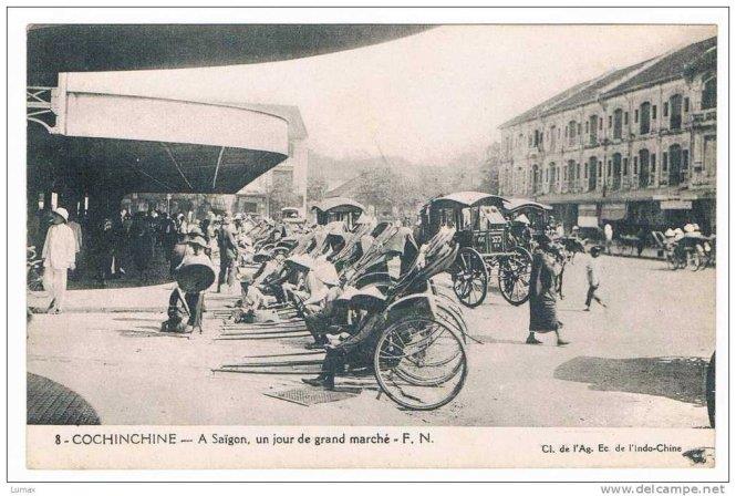 Bưu ảnh chợ Bến Thành thập niên 1920 ghi “Sài Gòn, một ngày ở Chợ Lớn ” (A Saigon, un jour de grand marché)