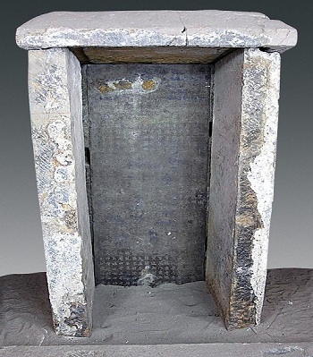 Tháp chứa di cốt nằm giữa một hòm sắt đặt trong rương đá.