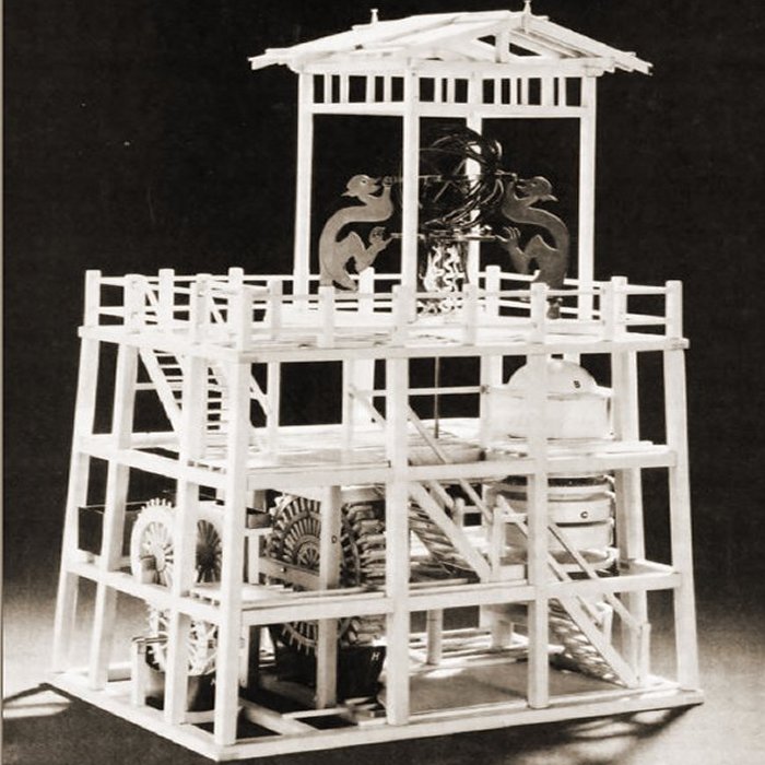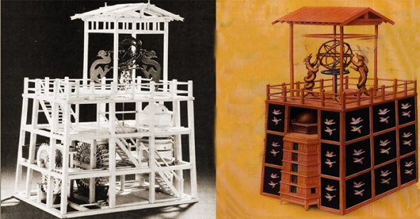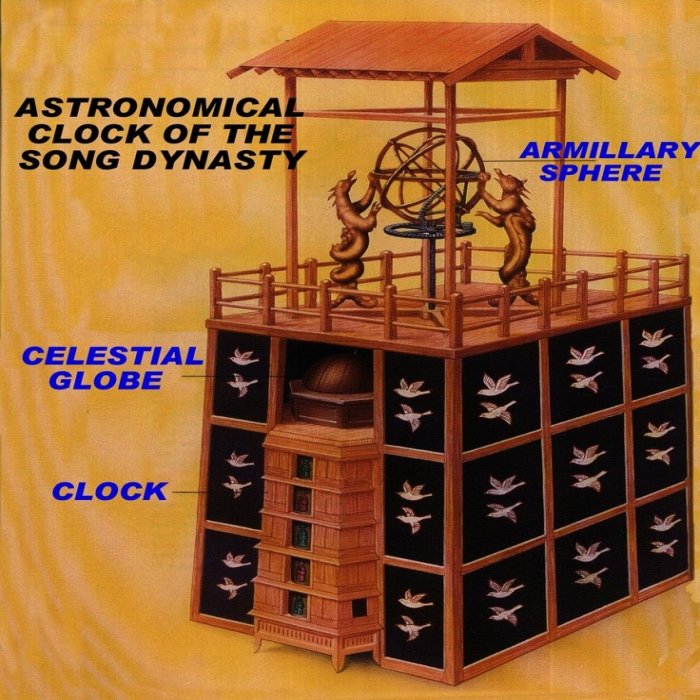 Và đó là thời gian cho “Cosmic Engine”, bộ đồng hồ thời Trung cổ vĩ đại nhất được xây dựng bởi nhà thiên văn học Su Song năm 1092. Thiết bị này là một tháp đồng hồ thiên văn cao hơn 10 mét, giống như tráp trước của Trương.