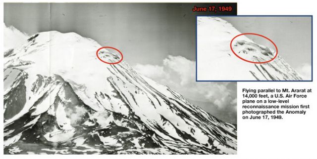 Năm 1943, trong thế chiến II, giữa Mỹ và Liên Xô có tồn tại một cầu hàng không để cung cấp vũ khí, đạn dược giữa căn cứ Mỹ ở Tunisse và căn cứ Liên Xô ở Erevan. Trong thời gian diễn ra hoạt động nói trên, hai phi công Mỹ khi bay qua Ararat đã phát hiện thấy ở sườn núi vó một vật giống như con tàu lớn. Tò mò bởi cảnh tượng lạ lùng, trong chuyến đi sau đó, họ bay gần hơn và có thợ ảnh của căn cứ đi cùng. Một vài trong số những bức ảnh này đã được đằng trên tờ tạp chí Châu Âu “Fields và Stars”.