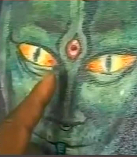 “Chủng loài Chitauri rất cao, có một cái đuôi dài và đôi mắt rực lửa. Một số trong đó có hai mắt màu vàng, một số có ba mắt màu đỏ và tròn ở giữa trán”. (Ảnh chụp màn hình)