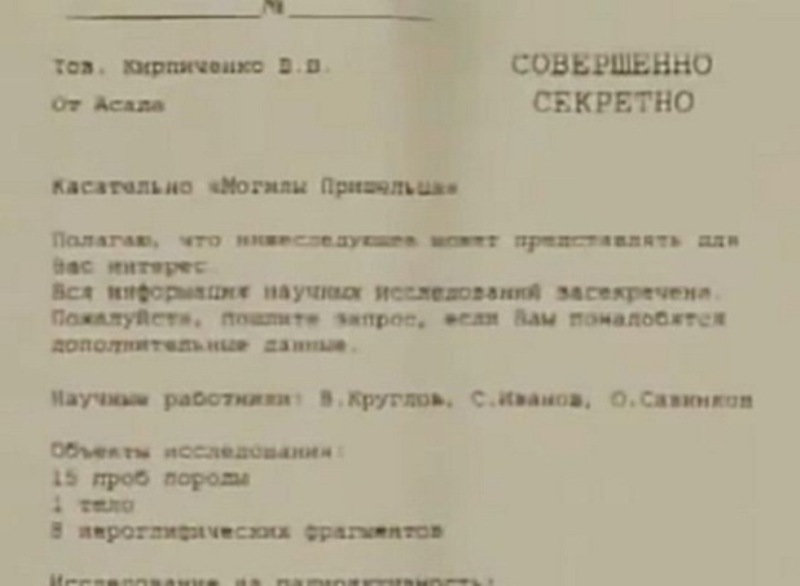 Theo báo cáo của nhân viên quân sự Nga đưa ra dự án ISIS năm 1961. Dự án ISIS tạo ra để thu thập những tài liệu được phân loại quan trọng về người ngoài hành tinh và công nghệ. Người ta tin rằng nhân viên quân sự Nga đã tìm thấy và xem xét một xác ướp của một người ngoài hành tinh 13.000 tuổi.