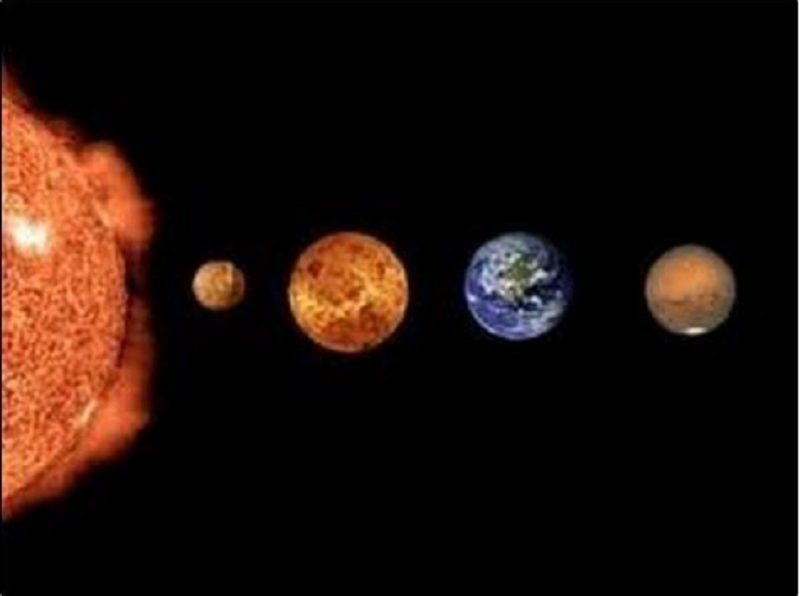 Từ trái sang phải: Mặt Trời, Sao Thủy, Sao Kim, Trái Đất, Sao Hỏa. (Ảnh: Pinterest)