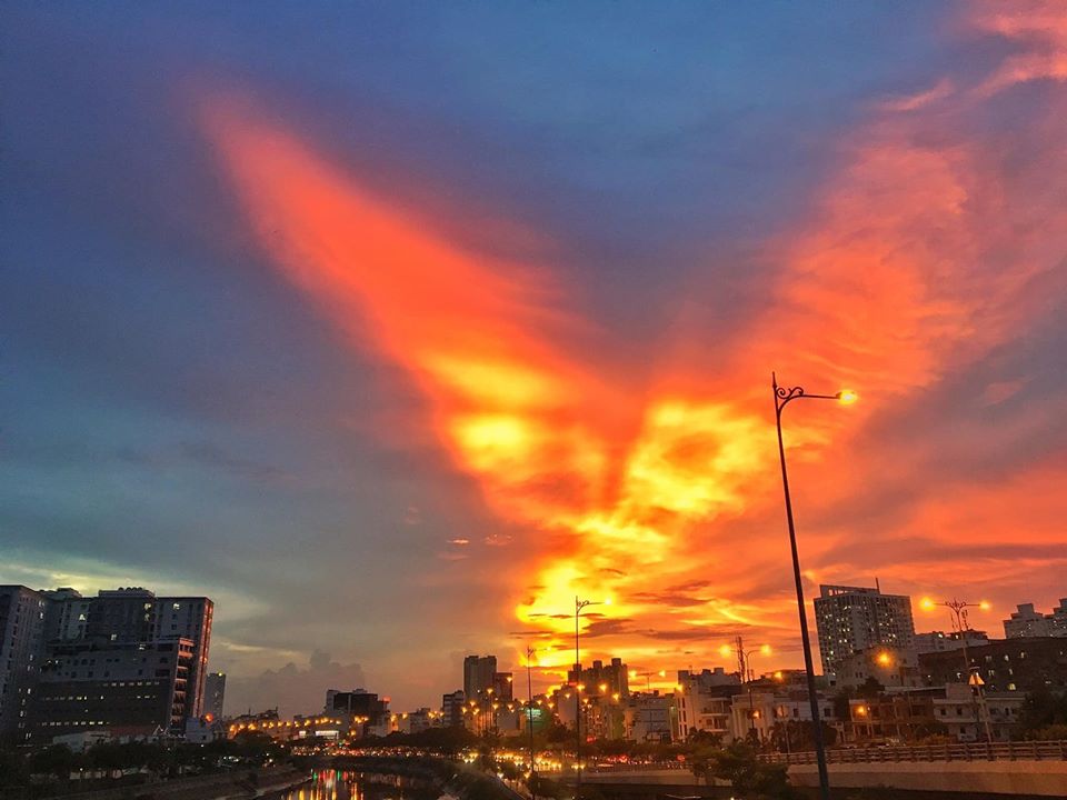 Chiều ngày 30/07, trên mạng xã hội xuất hiện nhiều tài khoản chia sẻ những bức ảnh chụp lại bầu trời Sài Gòn với hình ảnh phượng hoàng rực rỡ. Cư dân mạng cho biết phượng hoàng xuất hiện khoảng 2 - 3 phút rồi tan ra, bầu trời tối lại.