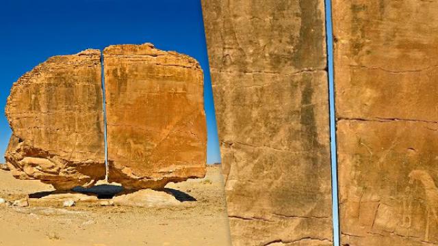 Năm 1883, Phiến đá Al-Naslaa khổng lồ thời được phát hiện nằm gần ốc đảo Tayma trong sa mạc của Ả Rập Xê-út là một trong những bí ẩn lớn nhất được con người tìm thấy…Điều đặc biệt là vết chẻ đôi phiến đá khổng lồ này nhẵn nhụi như có tác động của công nghệ laser. Theo kết quả phân tích, vết chẻ đôi này đã tồn tại cách đây 12.000 năm và không phải là sản phẩm của thiên nhiên.