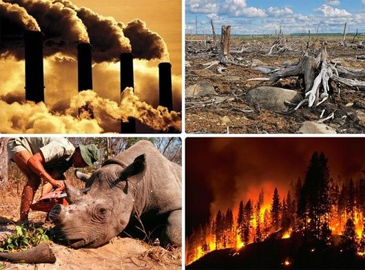Phá rừng, tăng dân số, săn bắn trái phép, gây ô nhiễm môi trường và xả khí thải làm nhiệt độ toàn cầu gia tăng… có thể là nguyên nhân cho cuộc đại tuyệt chủng sắp tới (Ảnh qua: khoahoc.tv)