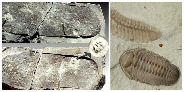 Hóa thạch bọ ba thùy trên dấu giày 250 triệu năm tuổi (Ảnh: wikipedia)