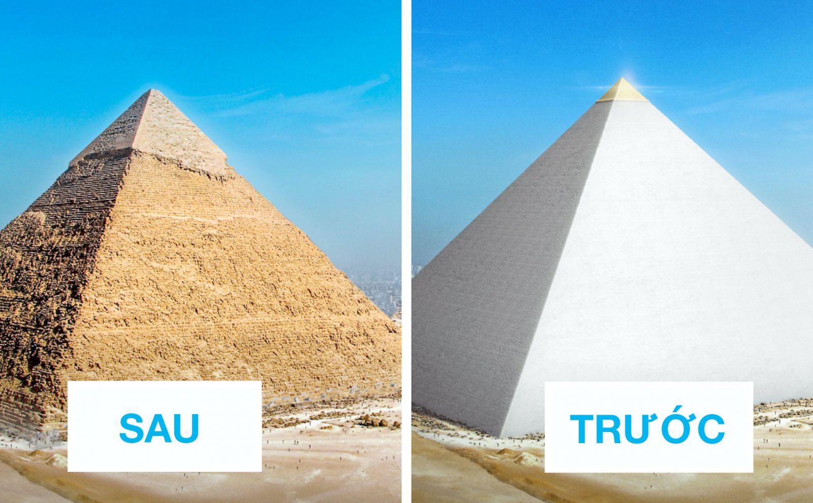 Không như hình ảnh màu vàng đất cổ kính mà ta nhìn thấy ngày nay, một tài liệu mới cho thấy kim tự tháp ban đầu có màu trắng với phần đỉnh được dát vàng.