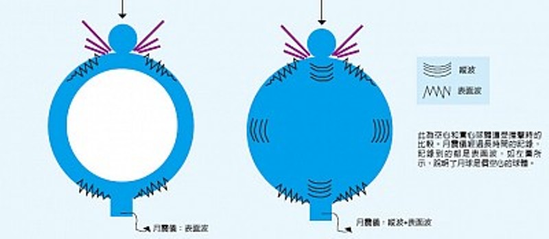 Vào năm 1969, NASA đã tạo ra một va chạm trên bề mặt Mặt Trăng để các phi hành gia của phi thuyền Apollo 12 có thể đo đạc sóng địa chấn phát ra. Mặt Trăng “rung lên” đến hơn 55 phút. Chấn động từ nhỏ rồi lớn dần lên, và duy trì ở cường độ lớn nhất trong khoảng 8 phút, sau đó biên độ sóng yếu dần rồi mất hẳn. Quá trình này diễn ra khoảng 1 tiếng, nhưng “dư âm ngân nga” kéo dài mãi.
