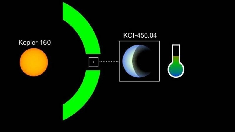 Sơ đồ mô tả cách KOI-456.04 quay quanh khu vực có thể sinh sống được của ngôi sao của nó - Kepler-160 - ở cùng khoảng cách Trái đất với Mặt Trời. Do đó, hành tinh này nhận được lượng năng lượng Mặt trời tương đương với Trái đất. (Ảnh: René Heller qua Earthsky)