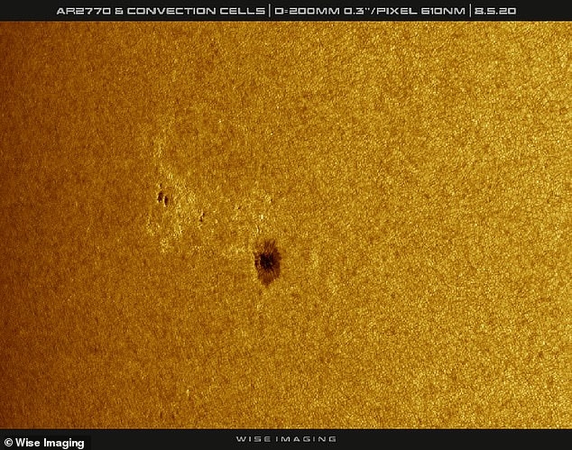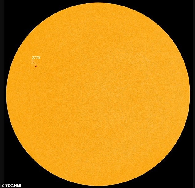 Vết đen, được đặt tên là AR2770, có kích thước “lõi tối chính” bằng chiều rộng của sao Hỏa và một số “đốm nhỏ” có kích thước bằng miệng núi lửa rải rác trên bề mặt của nó.