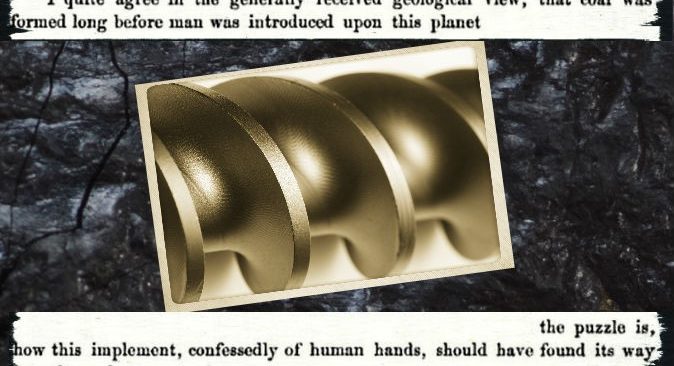 Theo học thuyết tiến hóa của Darwin, loài người chỉ chỉ mới xuất hiện trên Trái Đất trong hình dáng hiện tại từ khoảng 200.000 năm trước và lịch sử của tổ tiên loài người có lẽ đã trải dài từ khoảng một thời gian còn xa hơn nữa: khoảng 6 triệu năm. Đó chính là lý do tại sao sự xuất hiện của một công cụ nhân tạo bằng sắt – trông giống như một mũi khoan và nằm bên trong một cục than đá đã làm chấn động các nhà lịch sử học khi nó được phát hiện vào thế kỷ thứ 19, bởi phải mất vài trăm triệu năm để một khối than đá được hình thành.