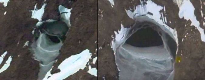 Hai “cánh cửa” được cho là nơi dẫn xuống thành phố cổ ở Nam Cực. (Ảnh: Đại Kỷ Nguyên)