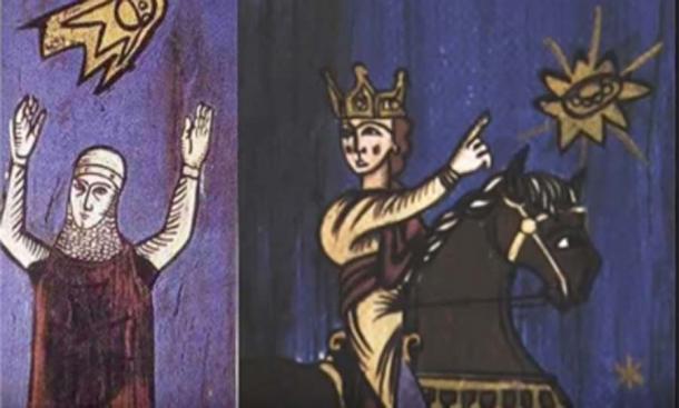 Trong một bức tranh khác, một trong những người thập tự chinh với vương miện trên đầu (có thể là một nhà lãnh đạo cao quý hay là Charlemagne) đang cưỡi ngựa và chỉ tay vào bầu trời, có vẻ như đang hướng đến vật thể bay thần bí.