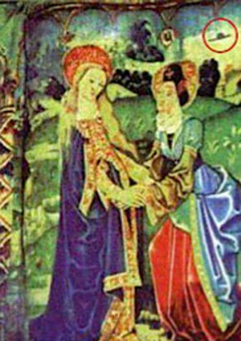 Hoặc trong các tác phẩm nghệ thuật thời Trung Cổ, đã miêu tả về các vật thể bay trông rất giống UFO, hay đĩa bay của người ngoài hành tinh.