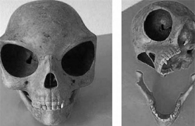Hộp sọ Sealand với hốc mắt quá to so với bất kỳ loài người nào từ cổ đại tới hiện đại và cho tới giờ vẫn chưa thể được xác định thuộc chủng loại nào. Ảnh: Mundo oculto