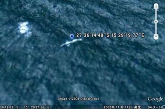 Ảnh chụp Google maps của loài sinh vật đang di chuyển trong lòng nước được cho là Ningen.