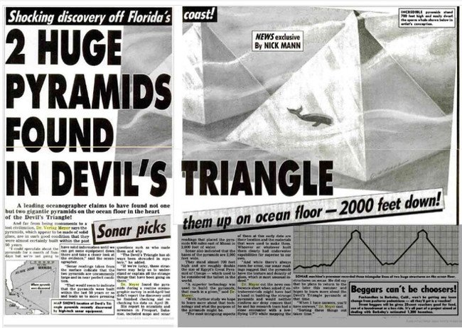 Bài báo đưa tin phát hiện 2 kim tự tháp lớn bằng thủy tinh dưới biển Tam giác quỷ Bermuda.