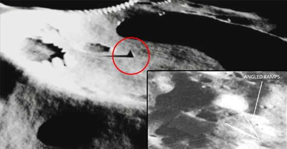 Ảnh gốc của cấu trúc trên Mặt Trăng (trong hình trên) xuất hiện trên kho lưu trữ của NASA theo số AS11-38-5564. Các pháo đài nằm bên trong một miệng núi lửa Mặt Trăng. Bức ảnh mang tới rất nhiều cuộc tranh luận xem đây có phải là một công trình tự nhiên hay không.