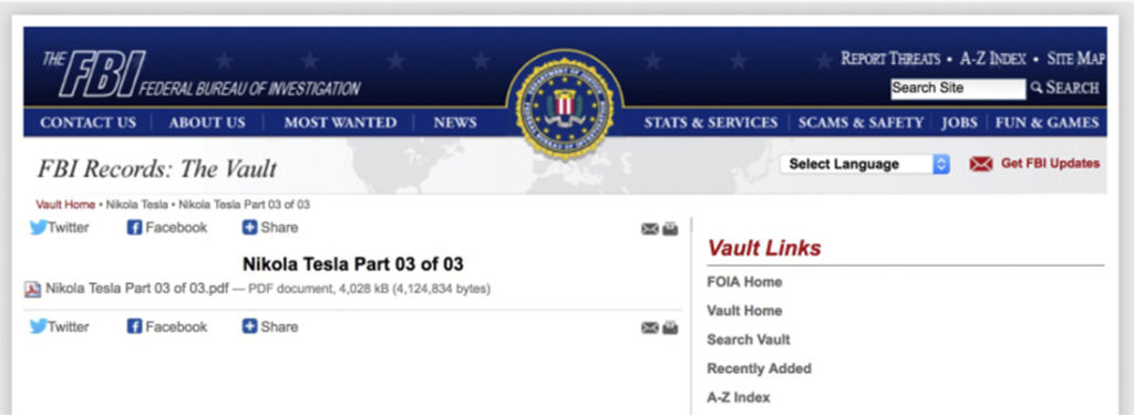 Tài liệu này có tên “Nikola Tesla Phần 03 của 03” là tài liệu thứ ba về Tesla được FBI giải mã, tổng cộng 64 trang, một số nội dung trong đó đã bị bôi đen.