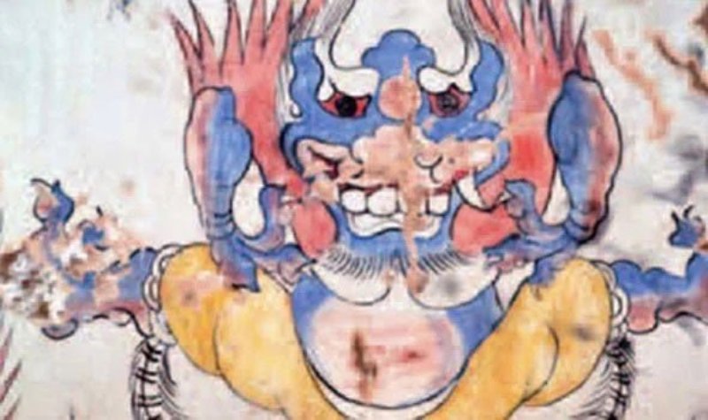 Bức vẽ "quái vật xanh" độc đáo trong cổ mộ.