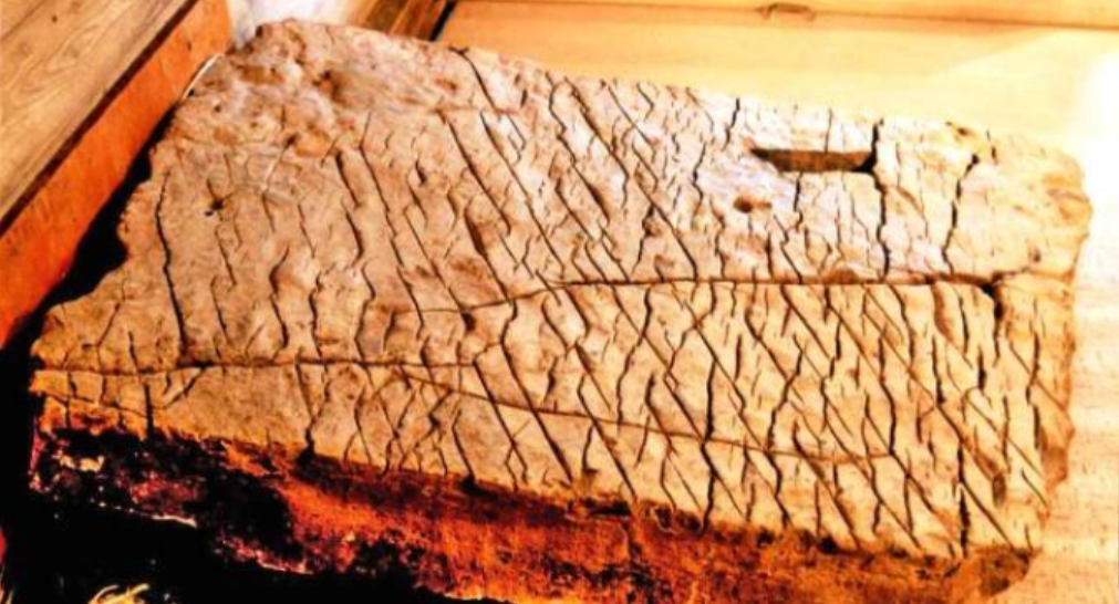Phiến đá này nặng hơn 1 tấn, có một số chữ khắc thú vị và được cho là kí tự Trung Quốc cổ đại, nhưng sau đó các nhà khoa học tuyên bố, ngôn ngữ của bản khắc không phải tiếng Trung Quốc, mà là một hệ thống chữ viết tượng hình không rõ nguồn gốc, và hiện các nhà nghiên cứu vẫn chưa giải mã hay đọc được chúng.