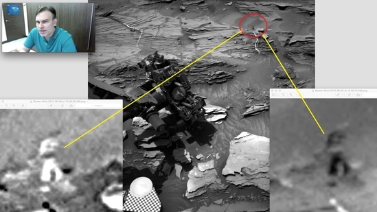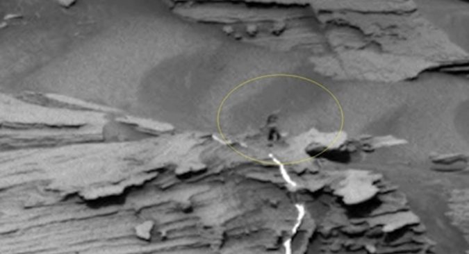 Tàu thăm dò Curiosity của Cơ quan Hàng không Vũ trụ Hoa Kỳ (NASA) lại tiếp tục gây bất ngờ cho công chúng. Bởi vì những nhà tìm kiếm UFO đã phát hiện vật thể có hình dạng con người trong các bức ảnh mà con tàu này đã chụp tại sao Hỏa. Bất ngờ hơn là những vật thể này đã thực hiện rất nhiều các động tác và tư thế giống với con người chúng ta như: đi bộ, đứng thẳng.