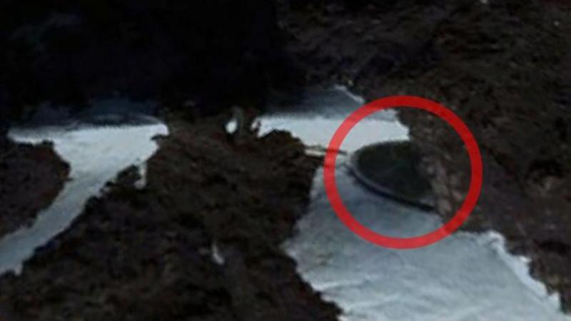 Đây là một vật thể hình đĩa lớn nhô ra một phần từ hang đá. (Ảnh: Google Earth)