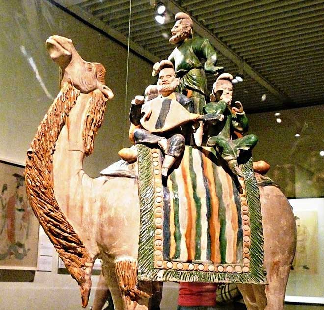 Bức tượng thời Đường mô tả khung cảnh trên con đường tơ lụa. (Ảnh: John Hill).