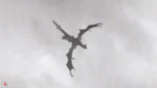 Loài sinh vật trong hình trông rất giống loài rồng trong truyền thuyết Tây phương. Con rồng khổng lồ đang đứng trên đỉnh của một cột thu phát tín hiệu radio. Dù vị trí từ người ghi hình tới con rồng khá xa, nhưng có thể dễ dàng ước lượng kích thước đáng gờm của nó khi vẫy cánh.