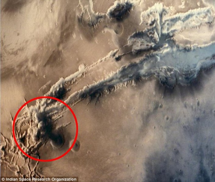 Một bức ảnh chụp bề mặt sao Hỏa của Tổ chức Nghiên cứu Không gian Ấn Độ (ISRO) vừa mới được công bố, cho thấy một đám mây hình nấm khổng lồ rất giống với những gì còn sót lại sau một vụ nổ bom nguyên tử. Đám mây hình nấm kỳ lạ được phát hiện gần hẻm núi Valles Marinerist trên bề mặt sao Hỏa.