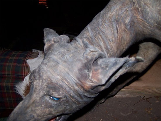 Nó có lớp da bì như da voi và không có lông như loài chó