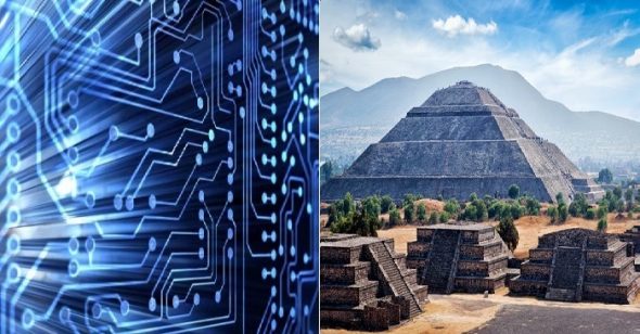 Thành cổ Teotihuacan ở Mexico với bố cục các kim tự tháp và đường phố trông rất giống một bảng mạch điện tử khi quan sát từ trên không.