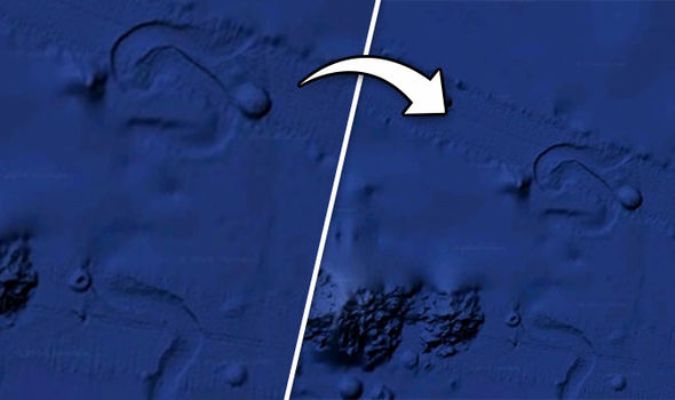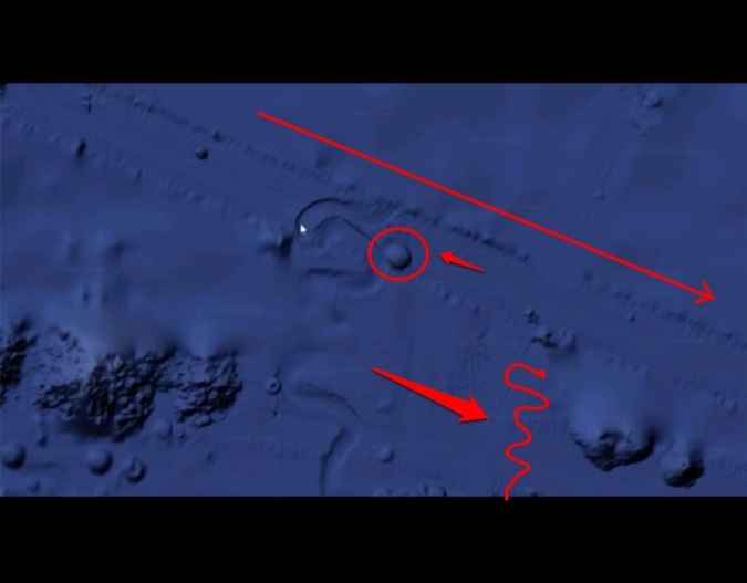 Một vật thể tròn cực lớn đã được phát hiện di chuyển rất chậm dưới đáy biển Thái Bình Dương tại độ sâu 900 mét dưới mực nước biển thông qua Google Earth.